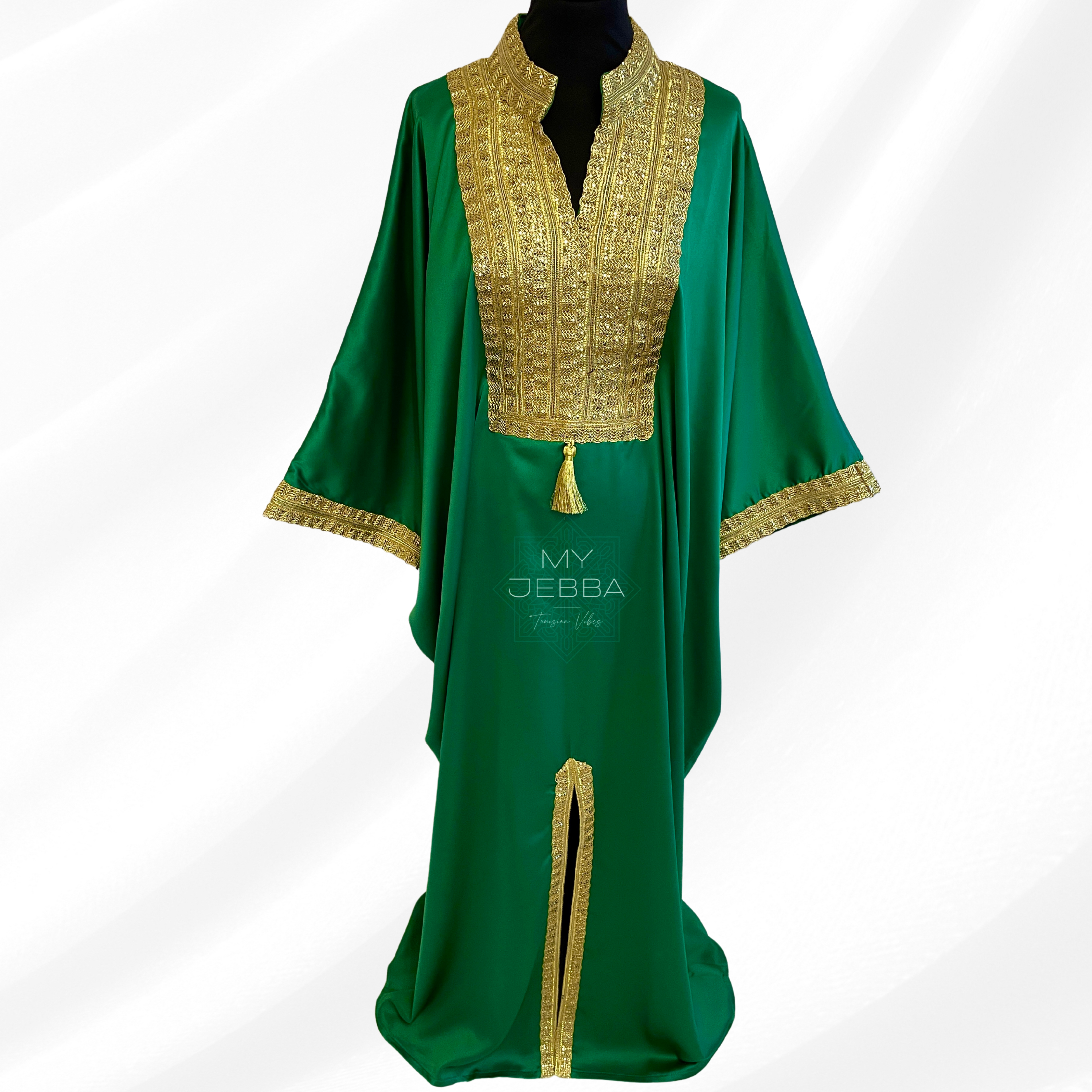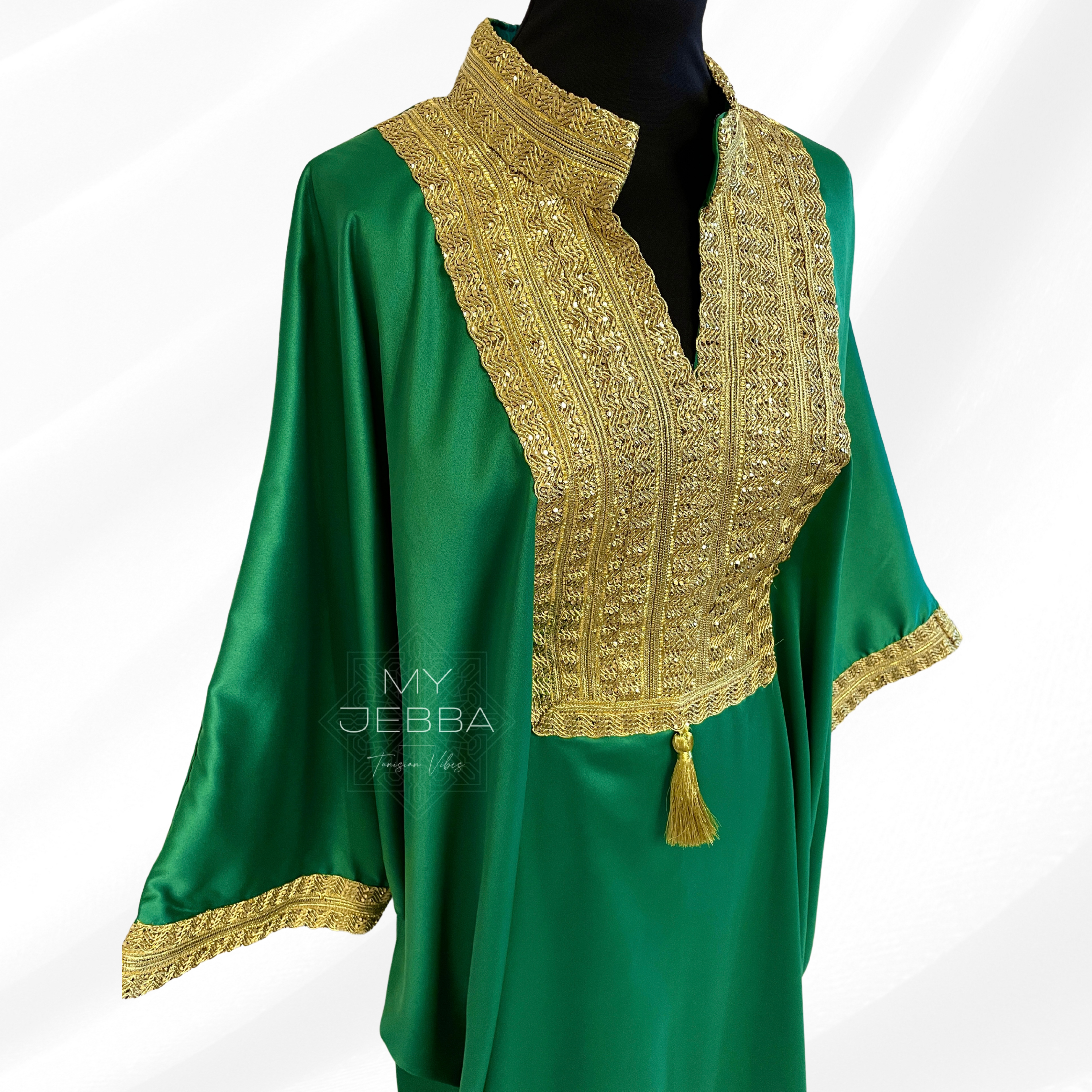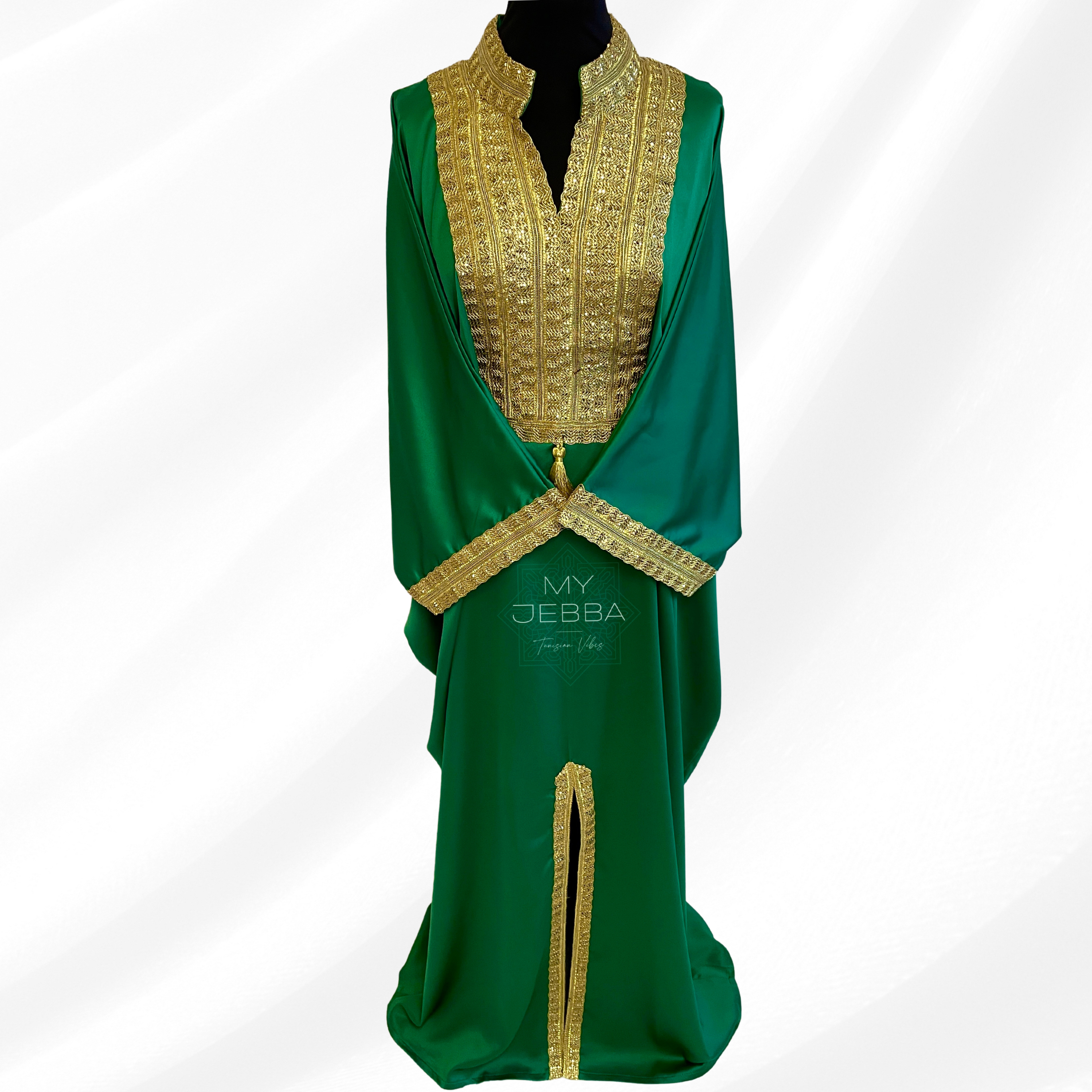 Découvrez la Jebba EMNA, une robe traditionnelle tunisienne en satin. Profitez de son allure traditionnelle et élégante tout en étant à l'aise. Parfaite pour toutes les occasions !