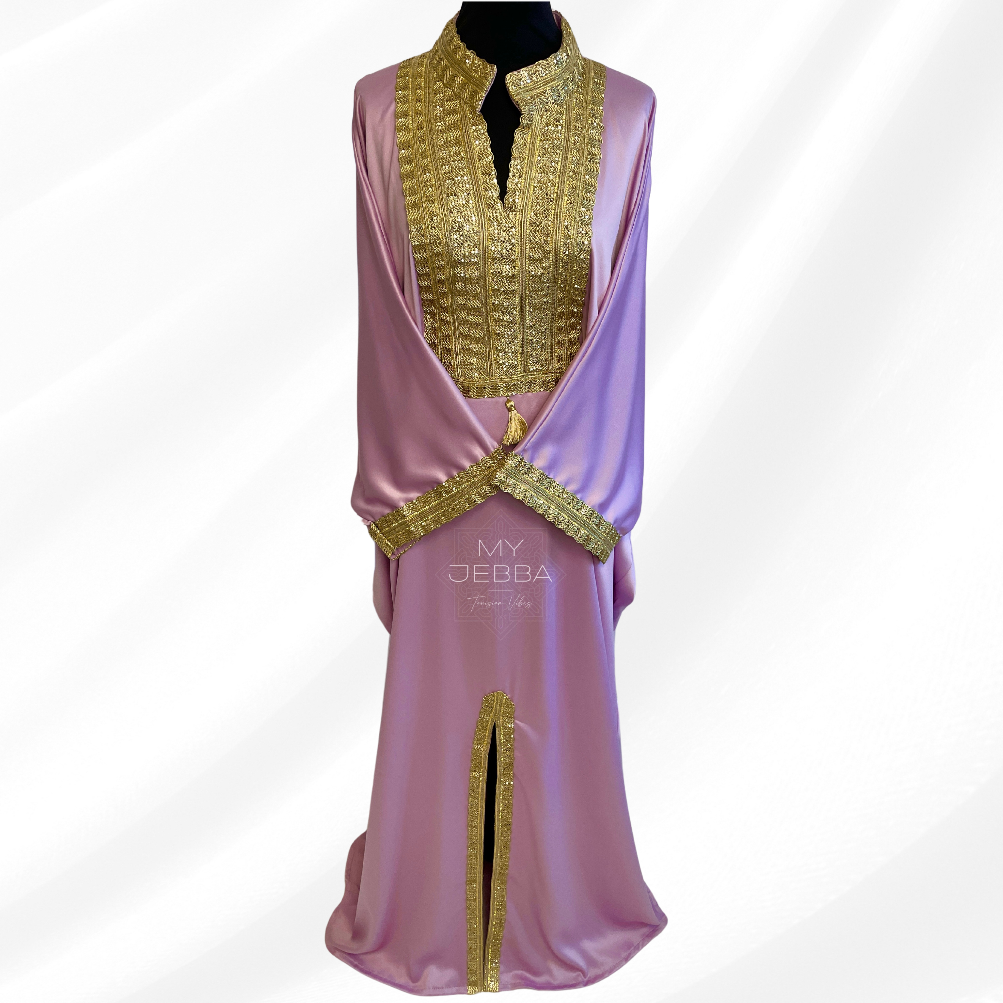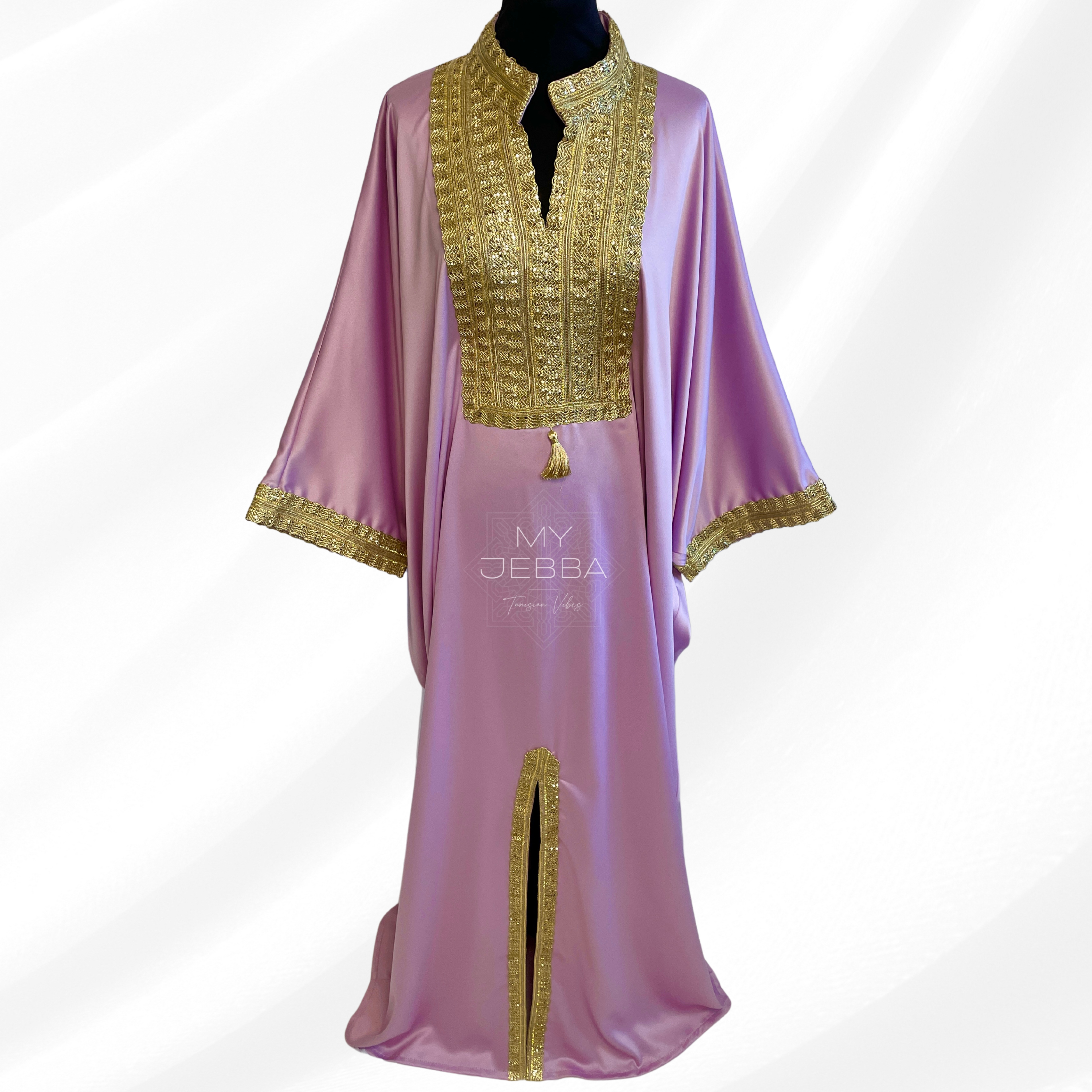 Découvrez la Jebba EMNA, une robe traditionnelle tunisienne en satin. Profitez de son allure traditionnelle et élégante tout en étant à l'aise. Parfaite pour toutes les occasions !