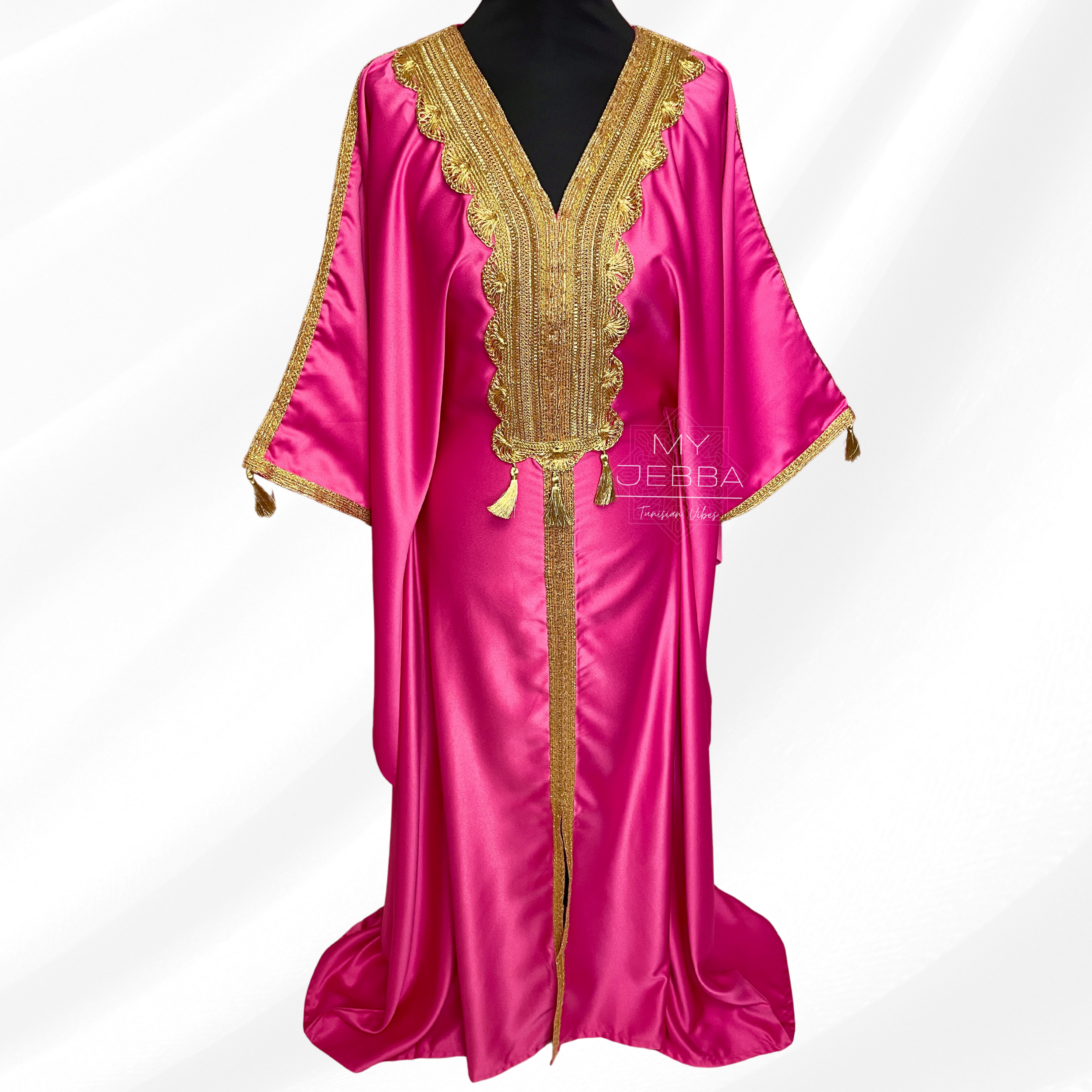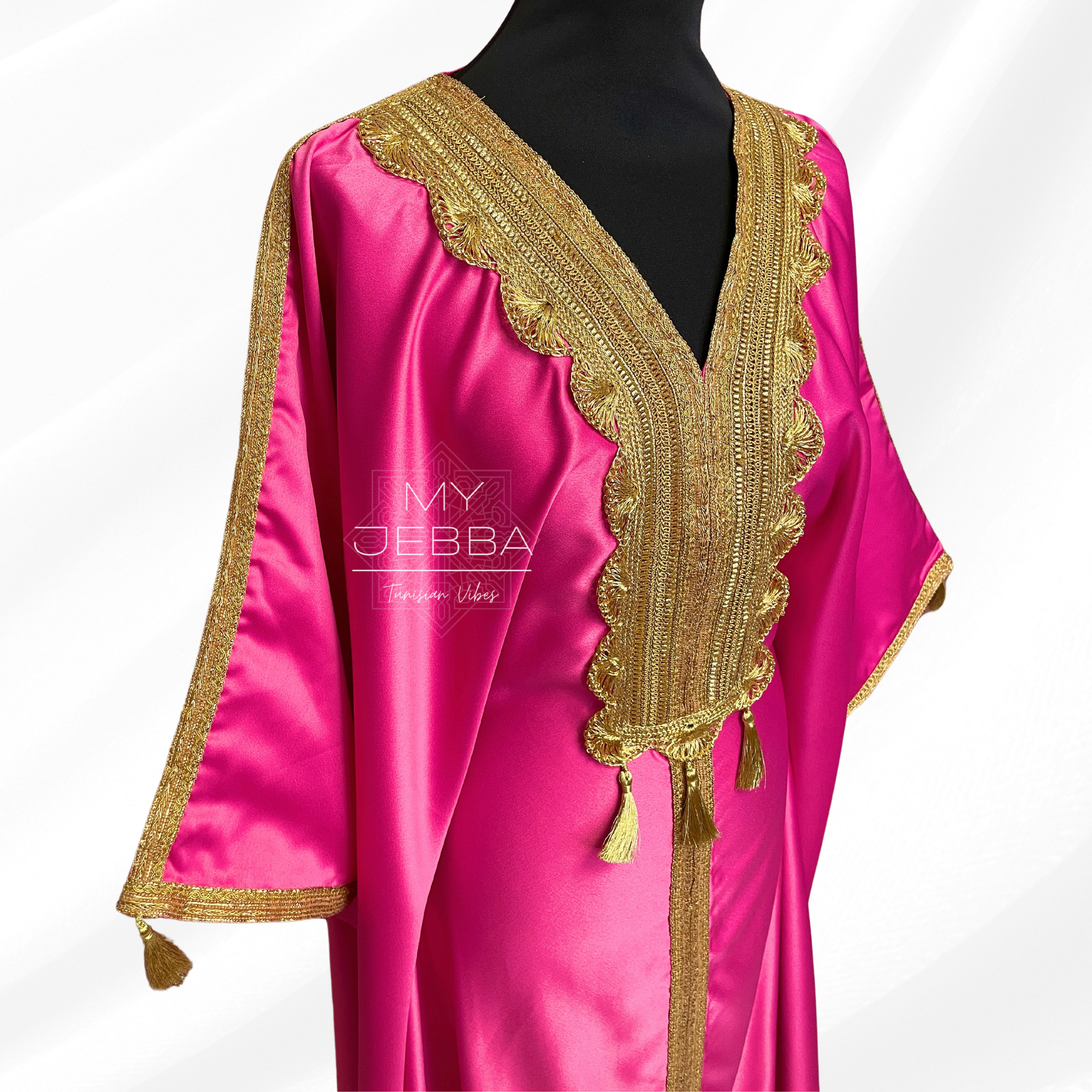 Découvrez la beauté et l'élégance de la Jebba SOUHIR. Confectionnée en satin de haute qualité, cette robe traditionnelle tunisienne est à la fois chic et confortable. Son tissu non transparent vous assure une confiance totale. Taille unique, elle convient à toutes les morphologies. Soyez la plus belle avec la Jebba SOUHIR !