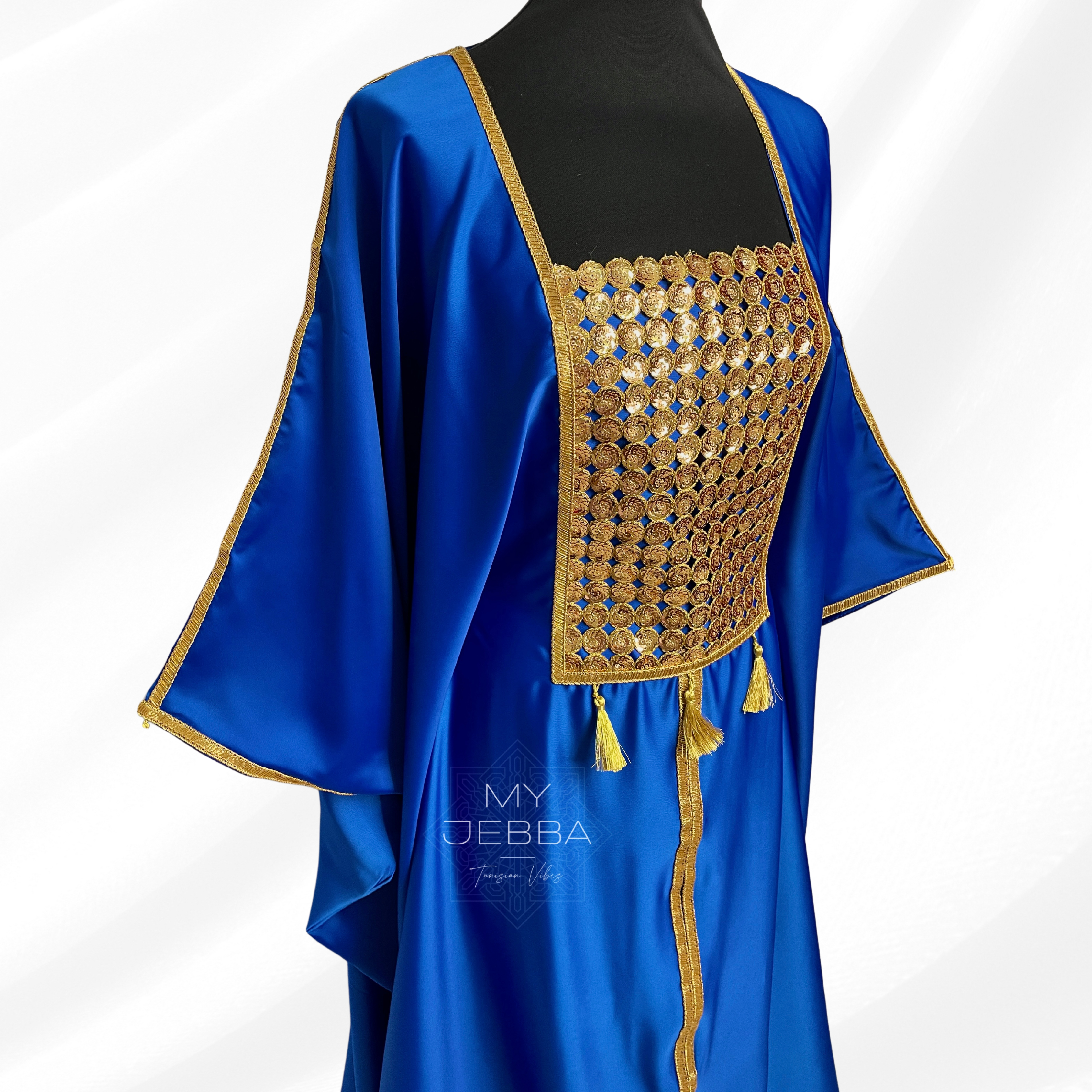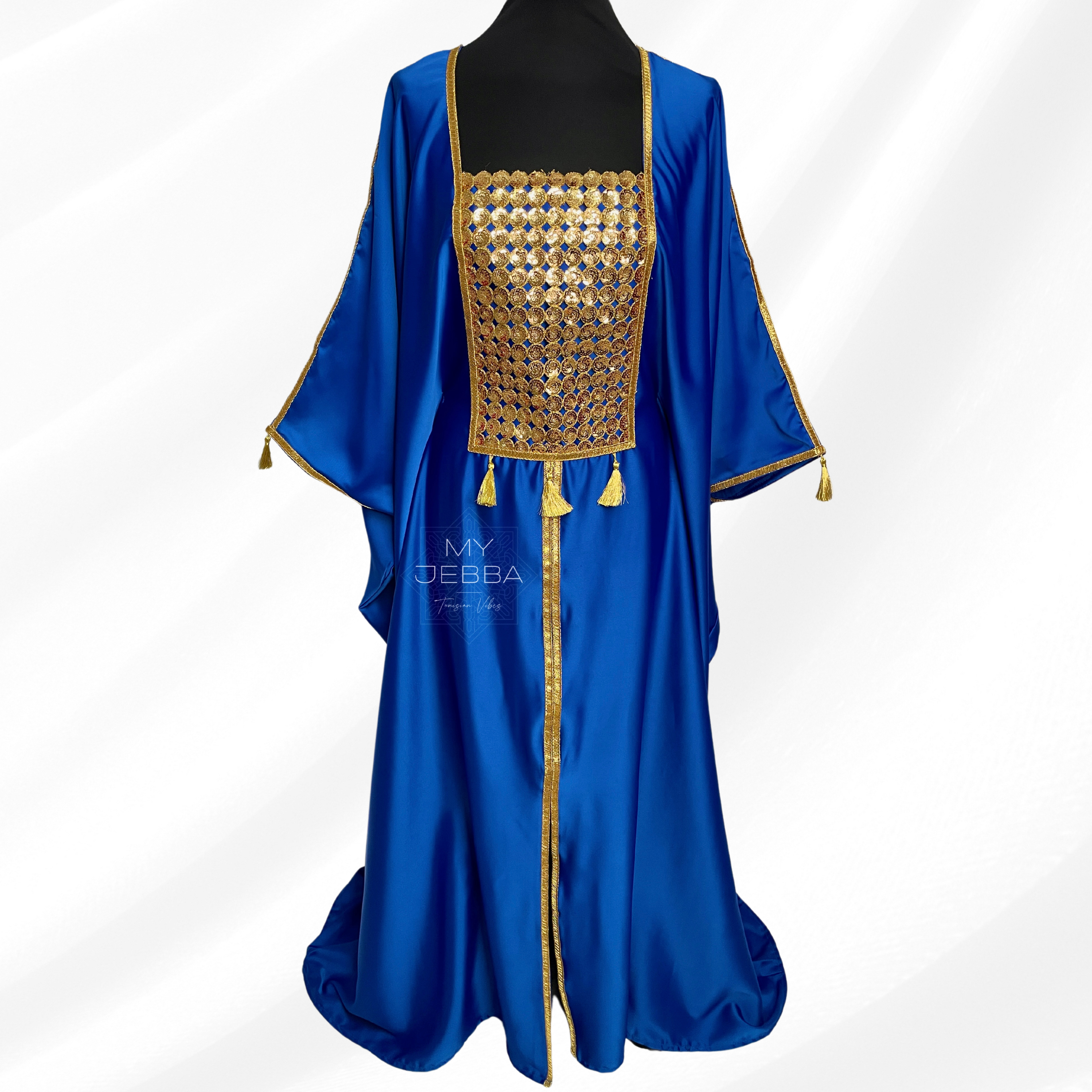 Découvrez la Jebba INÈS, confectionnée avec un tissu de haute qualité. Entièrement fait main et ornée de perles. Son col carré offre une touche élégante à cette tenue traditionnelle. Ressentez la douceur du tissu et faites-vous remarquer avec style.