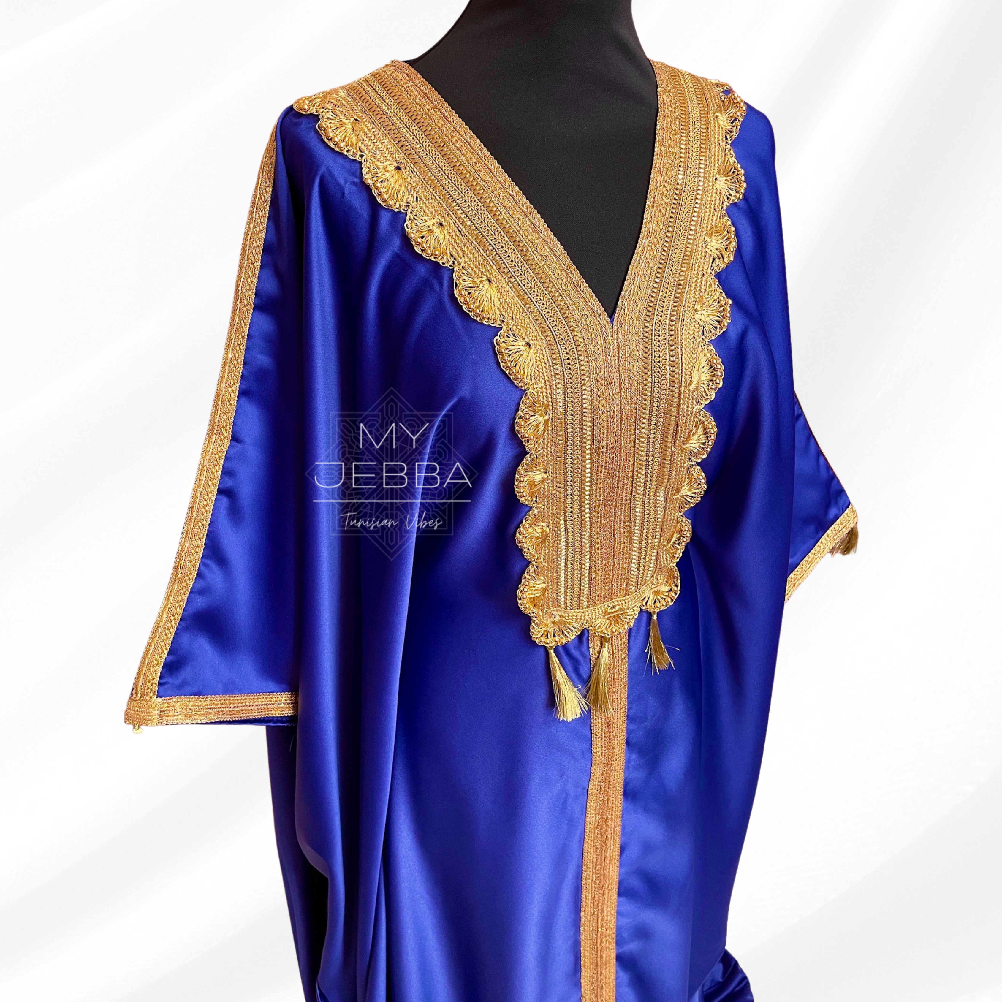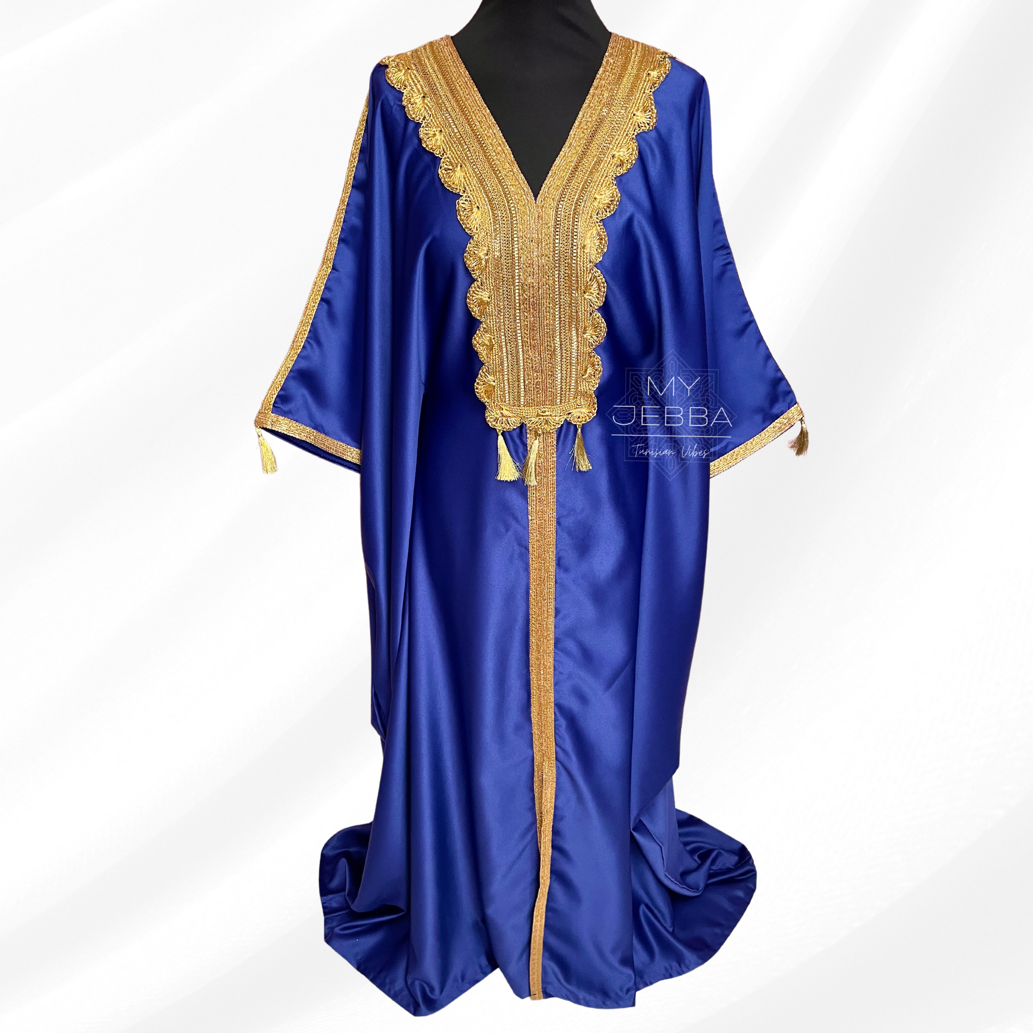 Découvrez la beauté et l'élégance de la Jebba SOUHIR. Confectionnée en satin de haute qualité, cette robe traditionnelle tunisienne est à la fois chic et confortable. Son tissu non transparent vous assure une confiance totale. Taille unique, elle convient à toutes les morphologies. Soyez la plus belle avec la Jebba SOUHIR !